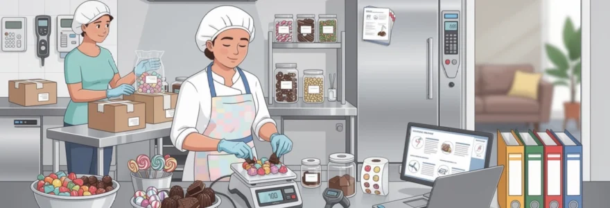 Comme dans un laboratoire classique, cette séparation peut passer par des règles simples : tablier et chaussures réservés au travail, interdiction des animaux pendant la fabrication, stockage des produits finis dans une armoire fermée. Ces mesures rassurent autant l’administration que vos clients, qui savent que leurs bonbons n’ont pas été confectionnés au milieu d’un repas de famille.
